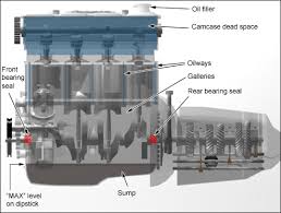 As mentioned before may two stroke engines have oil in the fuel which lubricates the engine parts. Another method of lubrication is having a wet sump, this system utilises oil that is poured into the crankcase and is a high enough level that the crankshaft and big end bearing are submerged at BDC, the movement of the piston splashes oil up on to the walls of the cylinder and the piston. In four stroke engines the oil is pumped to the top of the cylinder.